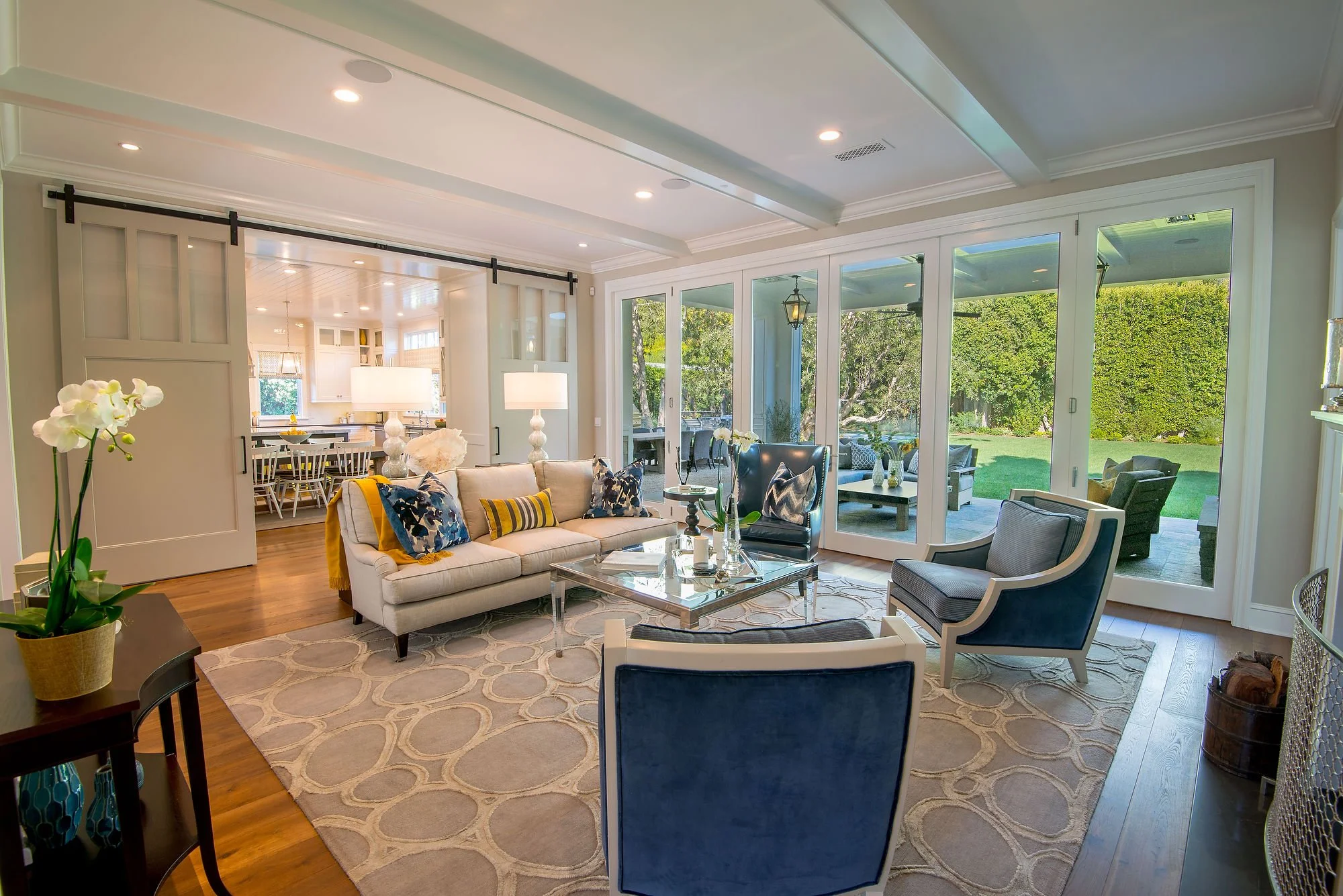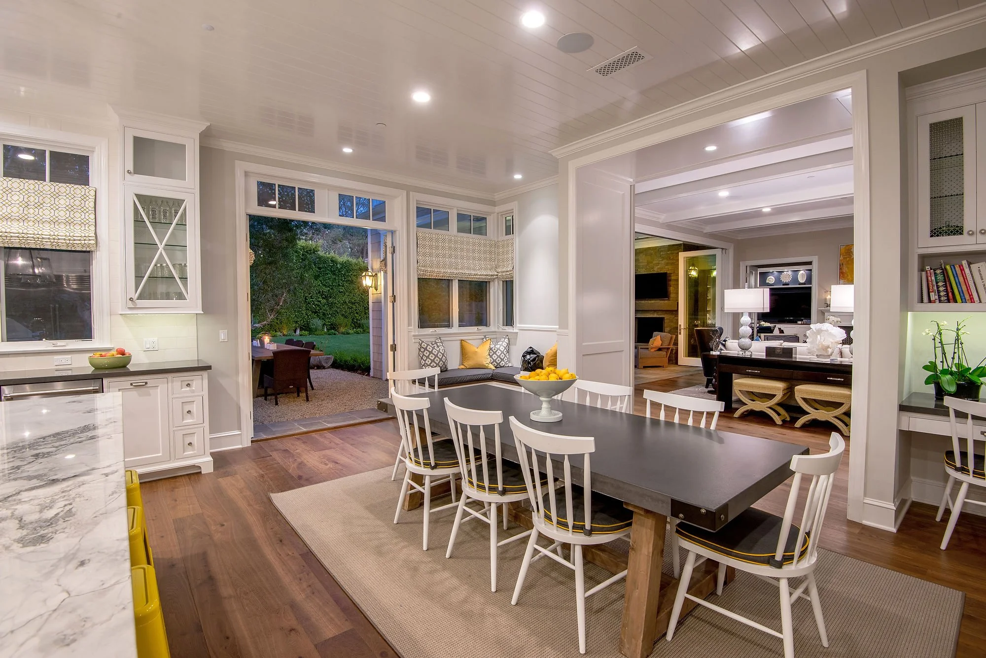 This 6,700-square-foot residence is centered around a dramatic living room, the true heart of the home, where family and friends gather daily.